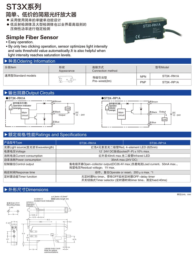 厂家直销 简易光纤放大器低反射检测体单件单功能稳定性ST3X-RN1A